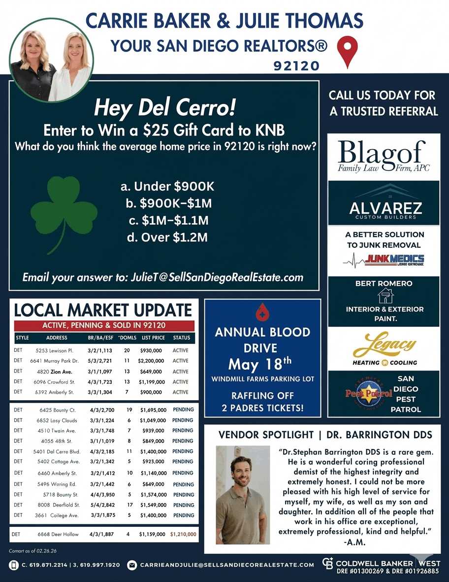 Our March, 2026 Del Cerro Newsletter